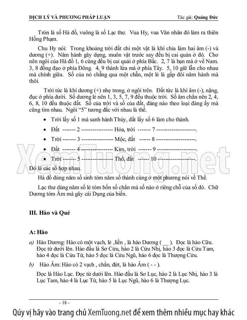 Sách "Dịch lý và phương pháp luận" của tác giả Quảng Đức được tóm soạn vào năm 1980 mới đầu dùng để làm tài liệu hướng dẫn các lớp Dịch học tại Việt Nam, tổ chức riêng lẻ tại Nha Trang. Thành phần tham dự đều là các tu sĩ Phật Giáo cho nên phần đầu căn bản về Âm Dương, Ngũ hành sinh khắc hầu hết đã thấu triệt, chỉ đi thêm sâu vào phần phương pháp luận đoán.