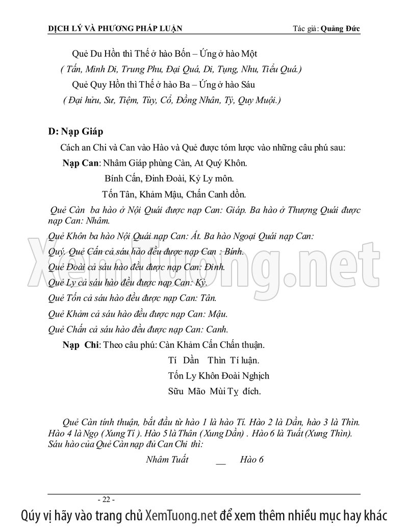 Sách "Dịch lý và phương pháp luận" của tác giả Quảng Đức được tóm soạn vào năm 1980 mới đầu dùng để làm tài liệu hướng dẫn các lớp Dịch học tại Việt Nam, tổ chức riêng lẻ tại Nha Trang. Thành phần tham dự đều là các tu sĩ Phật Giáo cho nên phần đầu căn bản về Âm Dương, Ngũ hành sinh khắc hầu hết đã thấu triệt, chỉ đi thêm sâu vào phần phương pháp luận đoán.