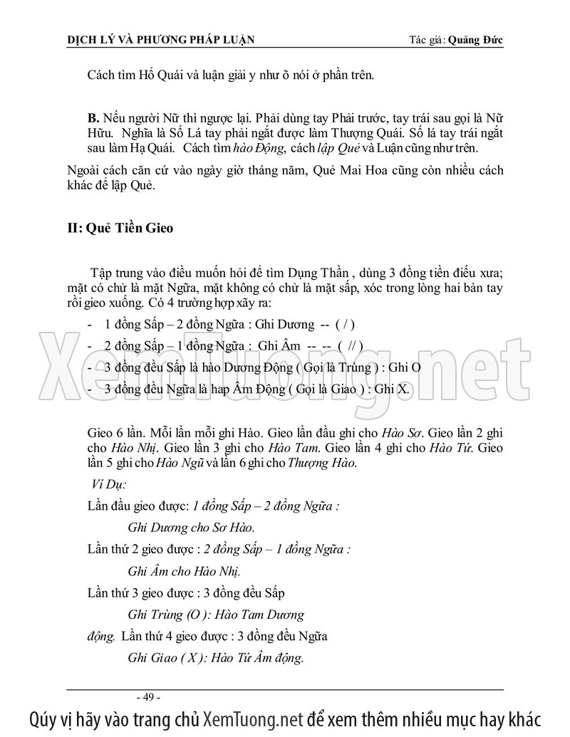 Sách "Dịch lý và phương pháp luận" của tác giả Quảng Đức được tóm soạn vào năm 1980 mới đầu dùng để làm tài liệu hướng dẫn các lớp Dịch học tại Việt Nam, tổ chức riêng lẻ tại Nha Trang. Thành phần tham dự đều là các tu sĩ Phật Giáo cho nên phần đầu căn bản về Âm Dương, Ngũ hành sinh khắc hầu hết đã thấu triệt, chỉ đi thêm sâu vào phần phương pháp luận đoán.