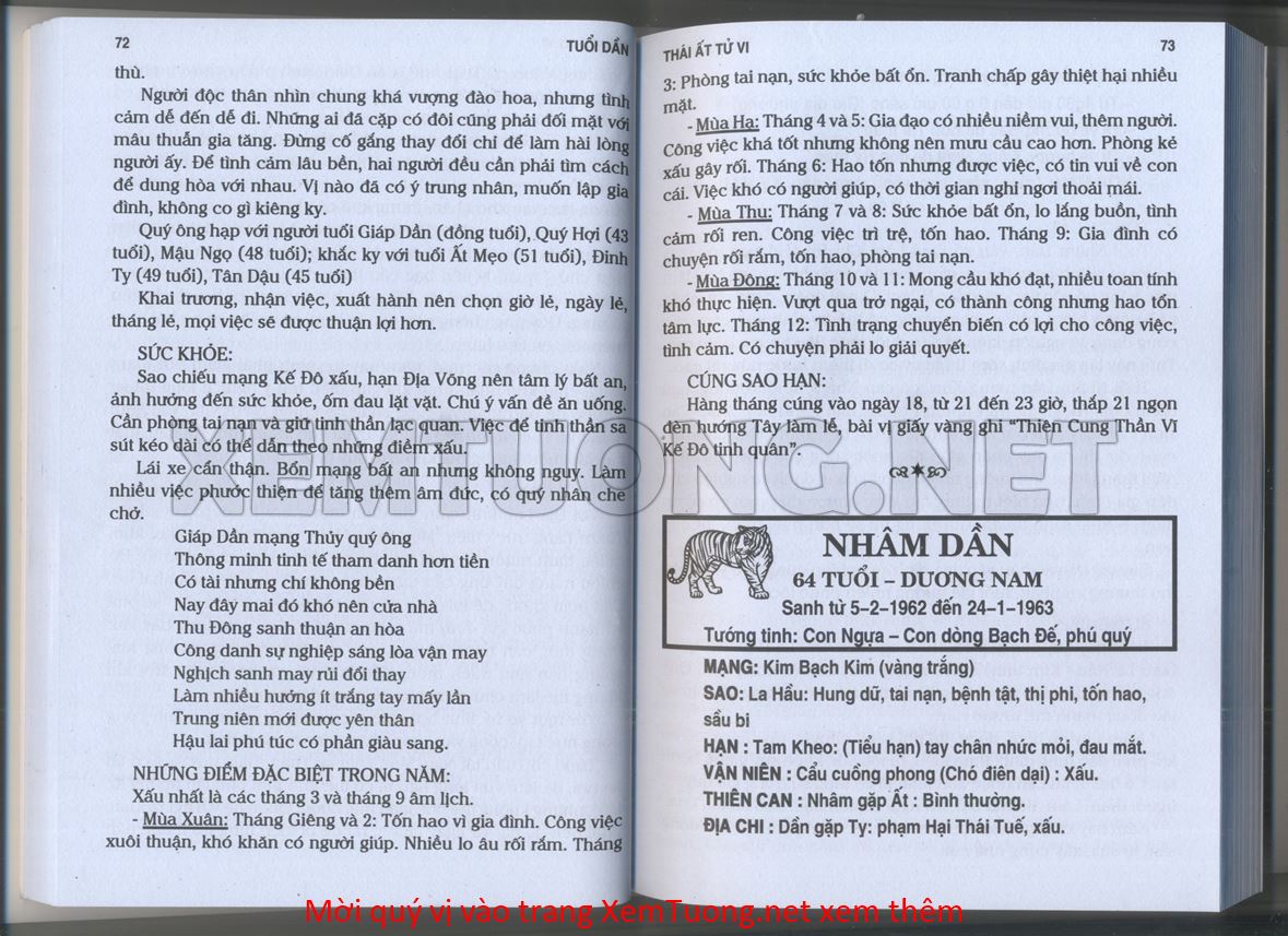 (Lưu ý: Thái Ất Tử Vi được chúng tôi scan từ sách, do đó mỗi tuổi sẽ có nhiều trang, quý vị xem xong hãy nhấn vào trang tiếp theo để xem hết phần tuổi muốn xem. Nếu quý vị xem bằng điện thoại thì hãy kéo qua lại để xem phần bị khuất.)