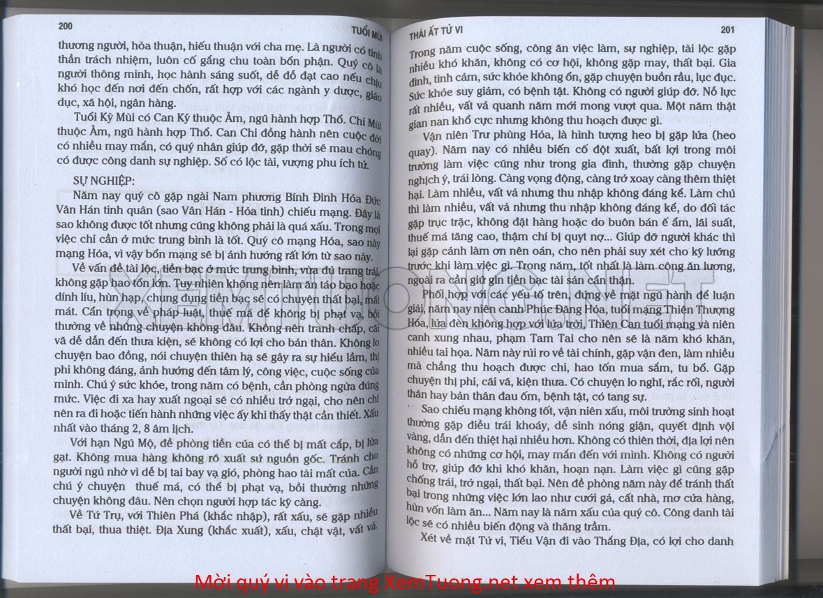(Lưu ý: Thái Ất Tử Vi được chúng tôi scan từ sách, do đó mỗi tuổi sẽ có nhiều trang, quý vị xem xong hãy nhấn vào trang tiếp theo để xem hết phần tuổi muốn xem. Nếu quý vị xem bằng điện thoại thì hãy kéo qua lại để xem phần bị khuất.)