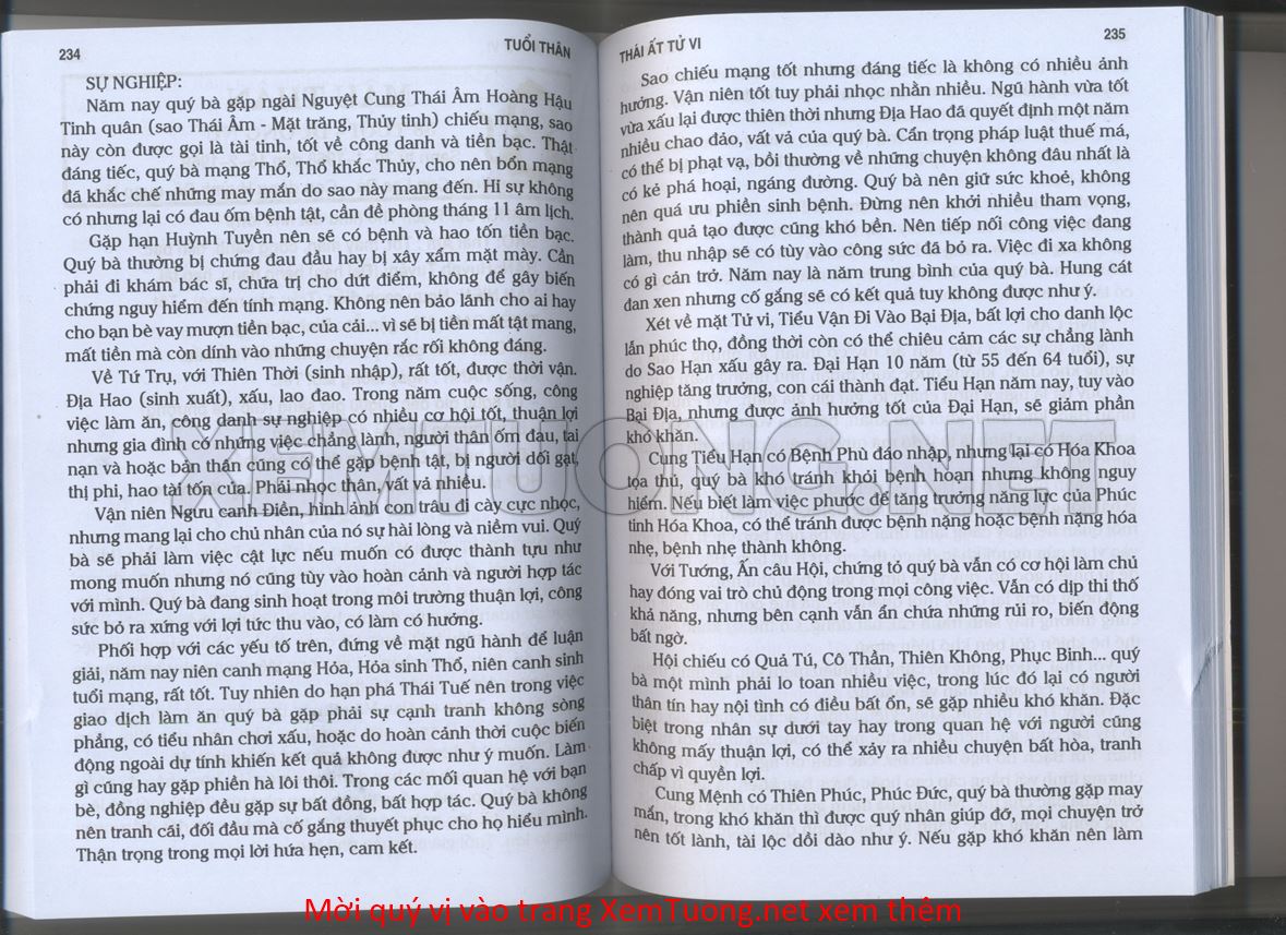(Lưu ý: Thái Ất Tử Vi được chúng tôi scan từ sách, do đó mỗi tuổi sẽ có nhiều trang, quý vị xem xong hãy nhấn vào trang tiếp theo để xem hết phần tuổi muốn xem. Nếu quý vị xem bằng điện thoại thì hãy kéo qua lại để xem phần bị khuất.)