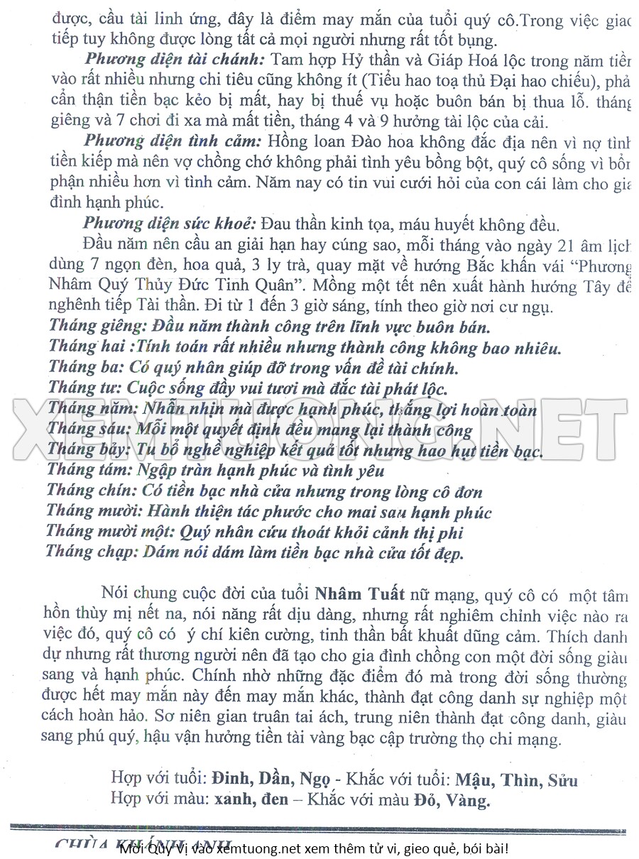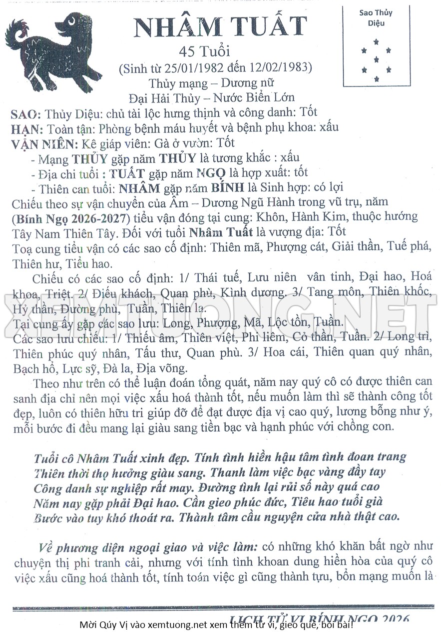 Tử Vi Năm Bính Ngọ 2026 mạng nữ NHÂM TUẤT