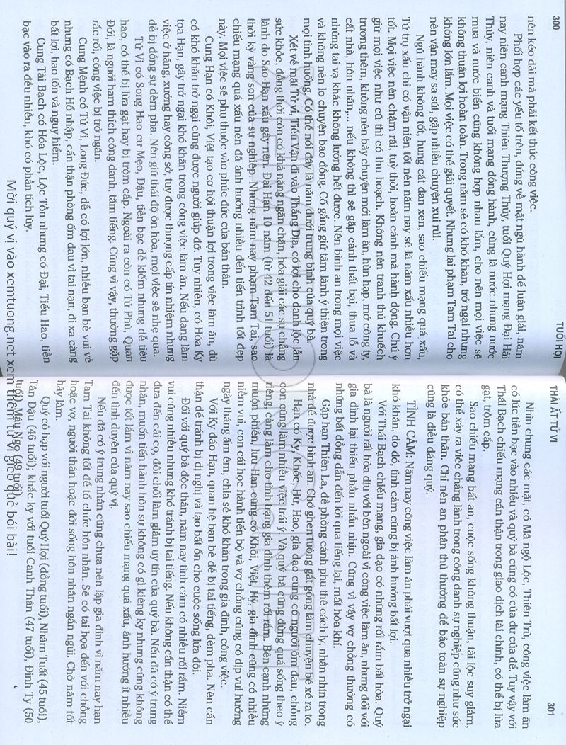 (Lưu ý: Thái Ất Tử Vi được chúng tôi scan từ sách, do đó mỗi tuổi sẽ có nhiều trang, quý vị xem xong hãy nhấn vào trang tiếp theo để xem hết phần tuổi muốn xem. Nếu quý vị xem bằng điện thoại thì hãy kéo qua lại để xem phần bị khuất.)